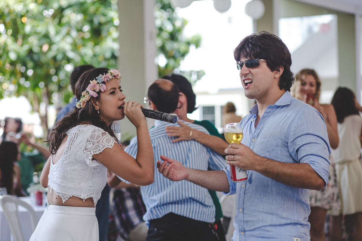 noivos catando no karaokê