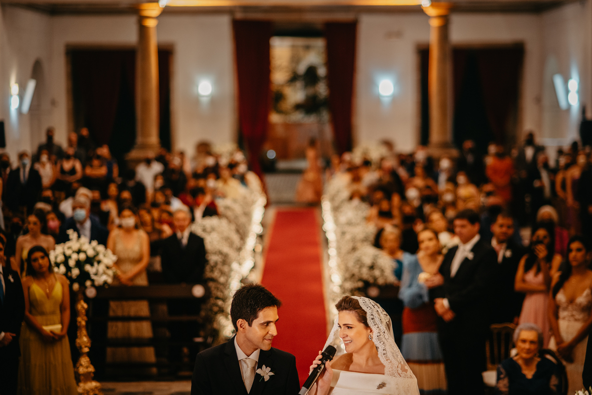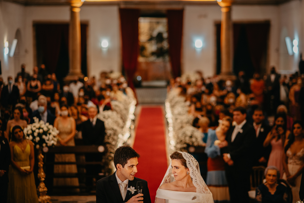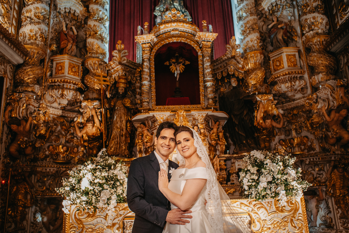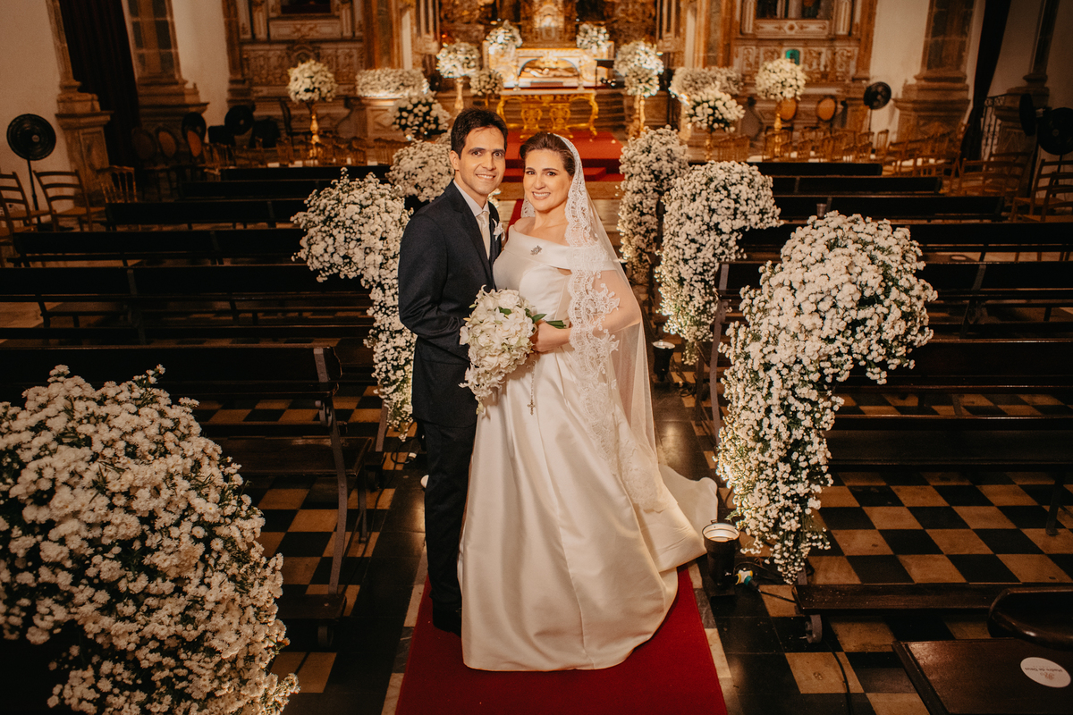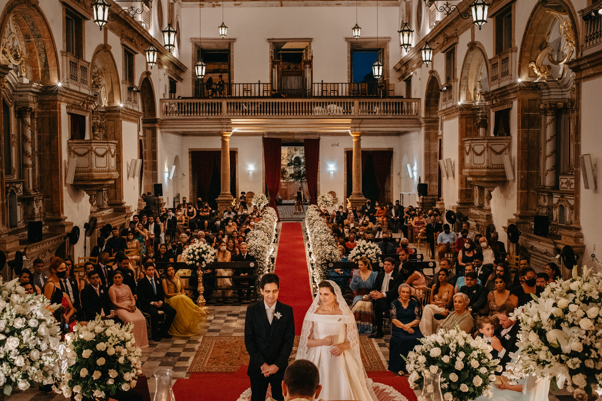 A cerimônia de casamento de Carol e Francisco aconteceu na igreja Madre de Deus no Recife Antigo.