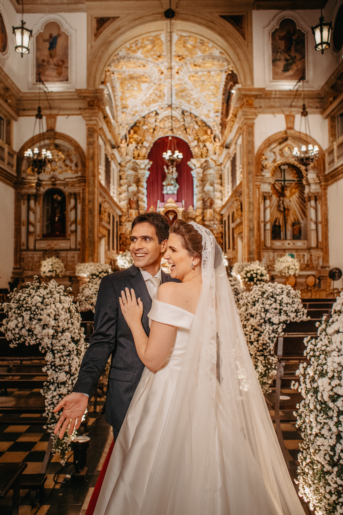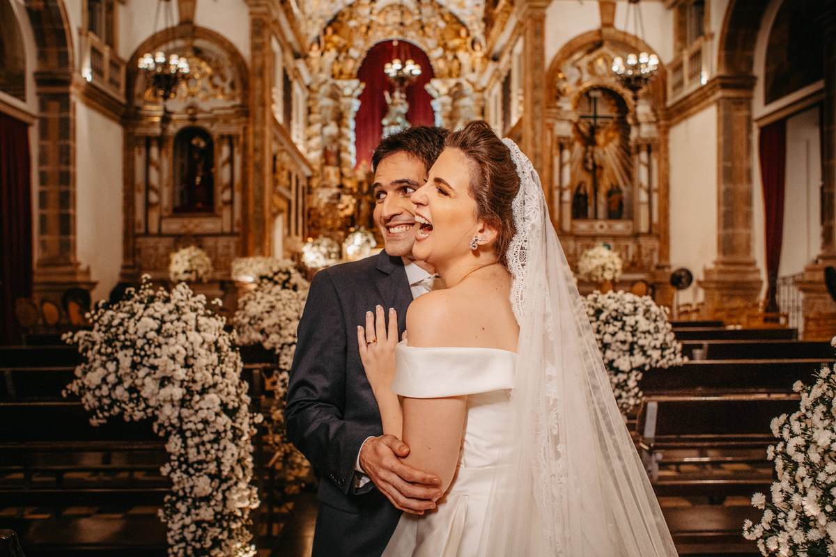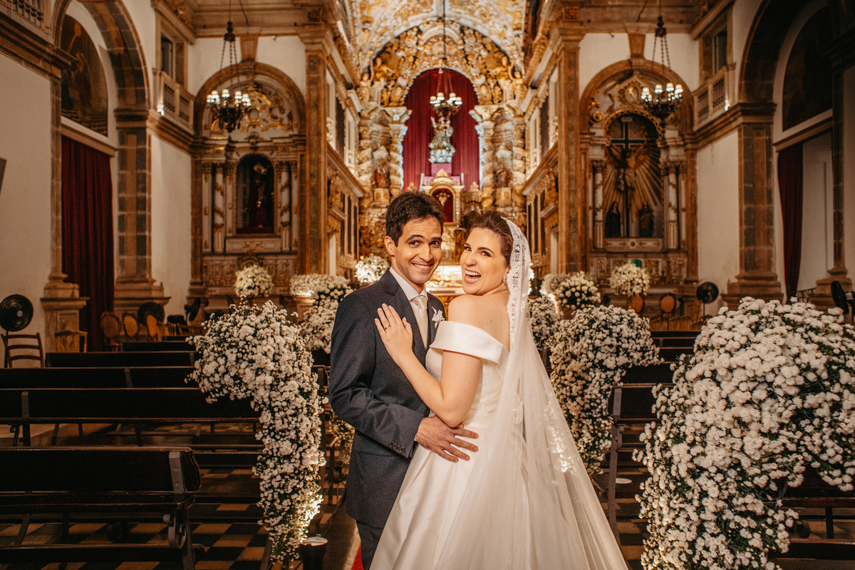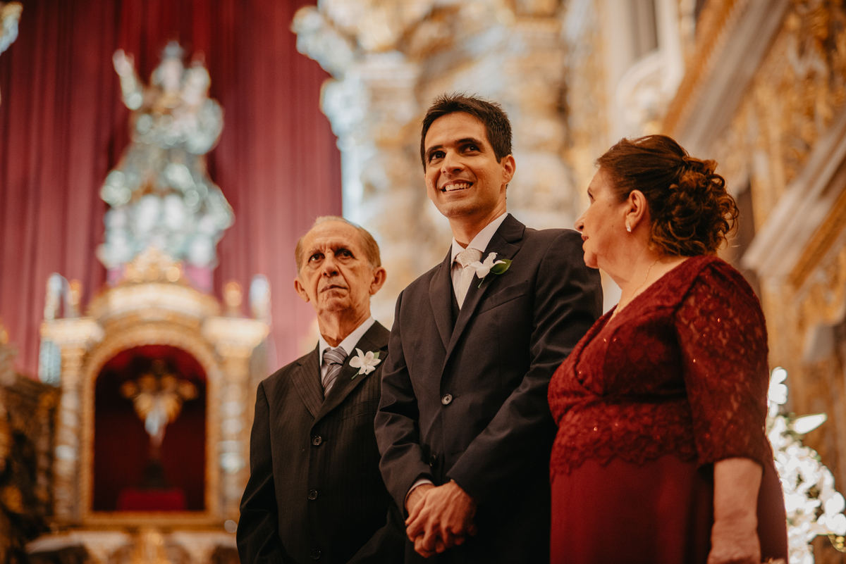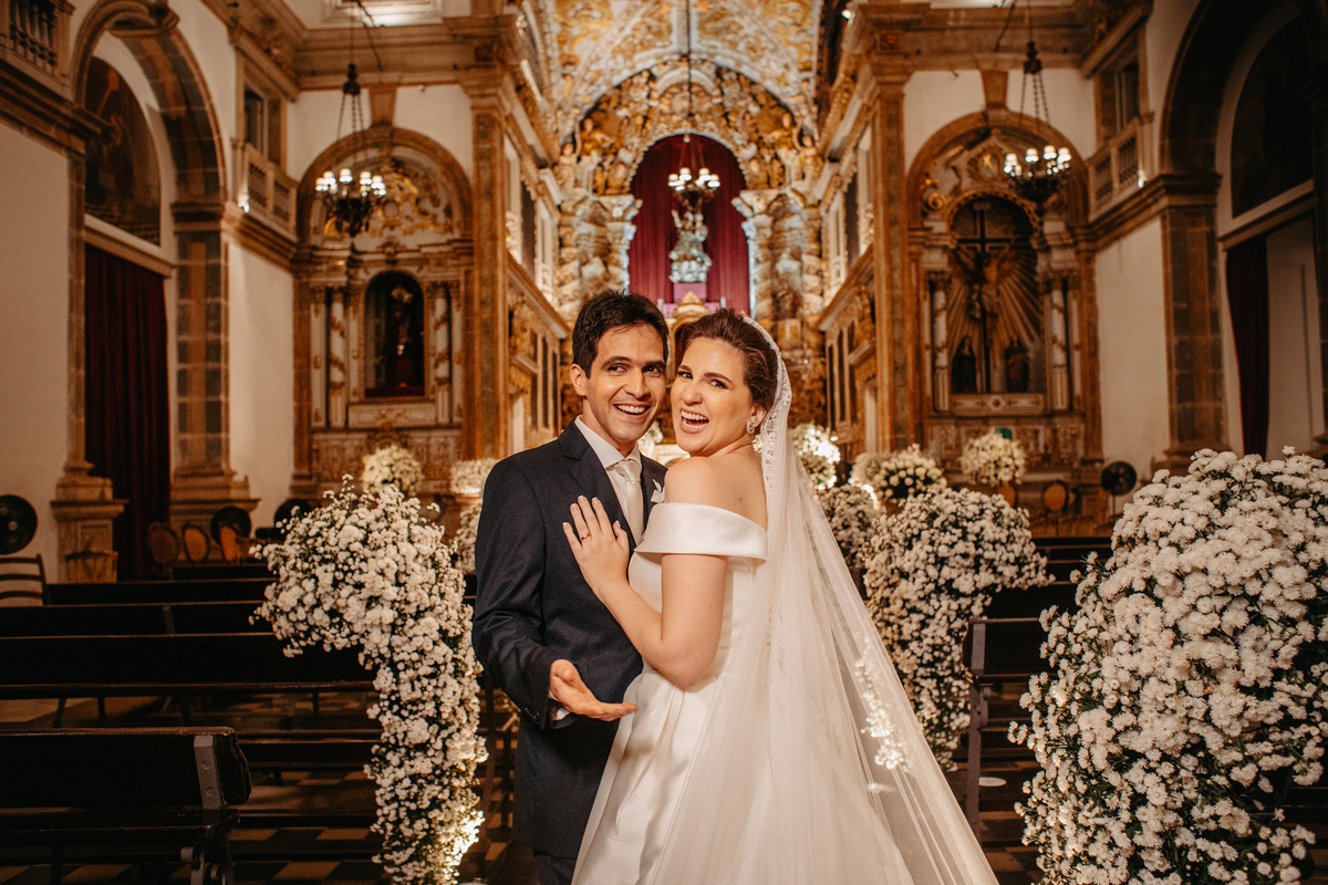 A cerimônia de casamento de Carol e Francisco aconteceu na igreja Madre de Deus no Recife Antigo.